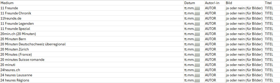 - Medium: Geben Sie den Namen des Mediums ein, in dem der Beitrag erschienen ist.