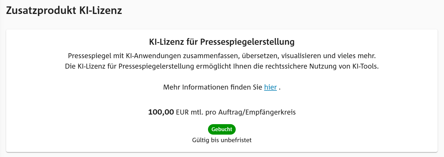 "KI-Lizenz für Pressespiegelerstellung" buchen