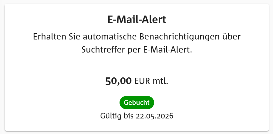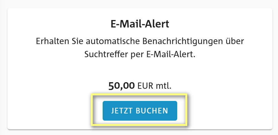 Wählen Sie das Zusatzprodukt „E-Mail-Alert“ aus und klicken Sie auf „Jetzt buchen“.
