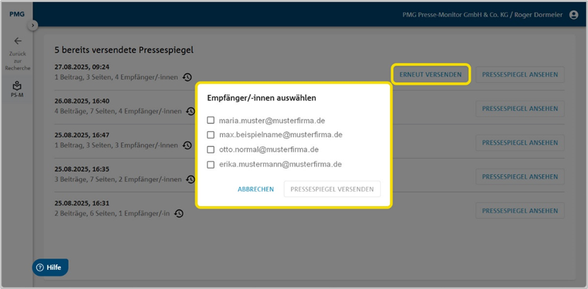 Bereits versendete Pressespiegel erneut versenden